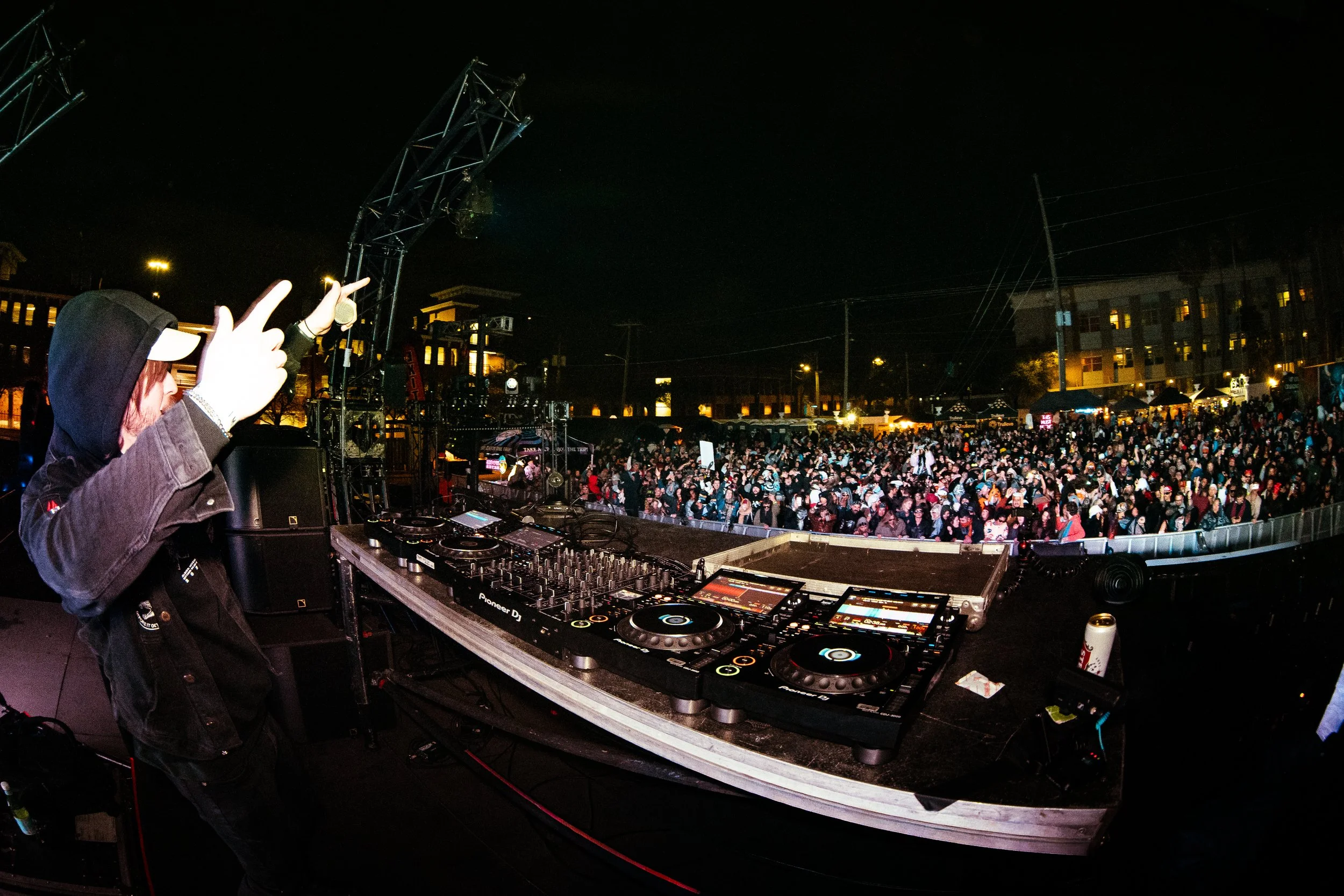 The night of Shipwrecked Festival started long before the first set. Vendors and artists arrived early, slowly shaping the grounds into something immersive and slightly off-kilter. Medical marijuana cards being checked next to silent DJ dance coves. Live graffiti taking form in real time, paint cutting through the wind as a light drizzle settled in. When the Florida cold front hit, people drifted inside to the second stage, warm and glowing. It felt less like a festival room and more like a nightclub tucked away for those who found it in the best way. Lasers and gobos traced the walls as bodies moved without urgency, half-lost in sound. Outside, the sun dipped low and the crowd poured in from the barricades, filling the space with anticipation before a single note was heard. From the very beginning, it was clear this was a festival built on atmosphere, not urgency.
